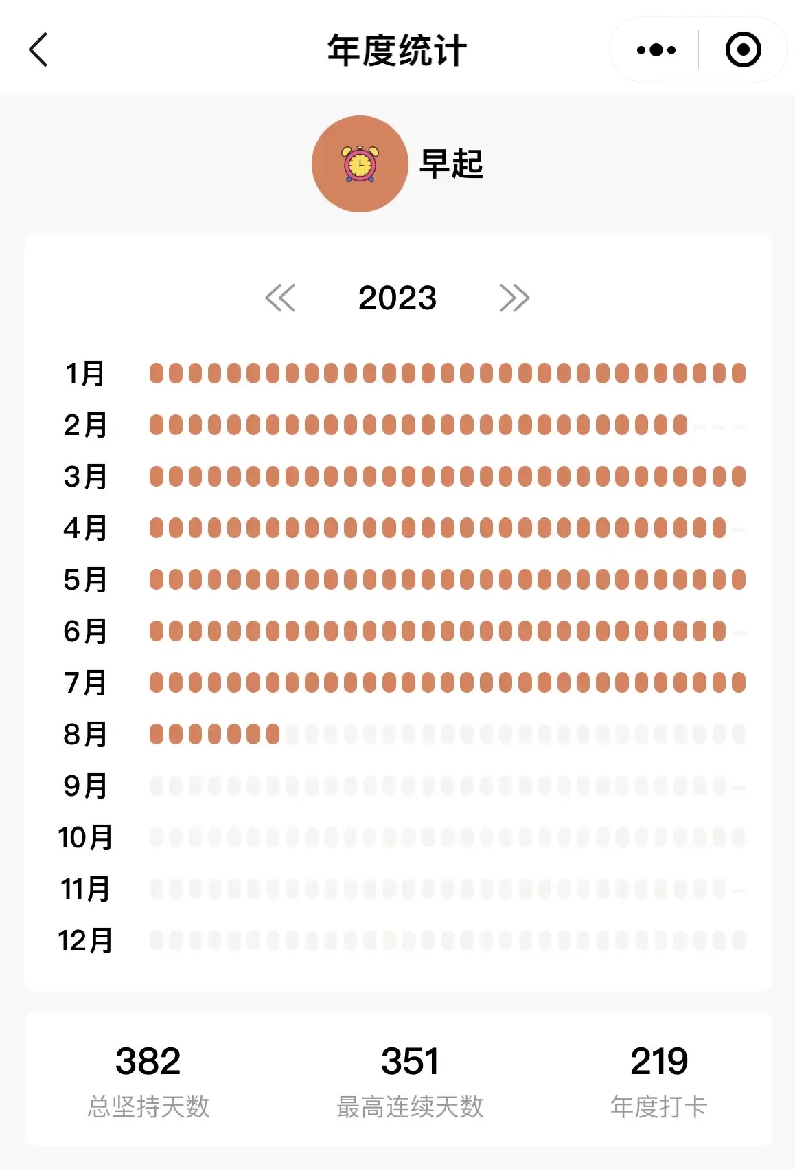 年度打卡统计显示