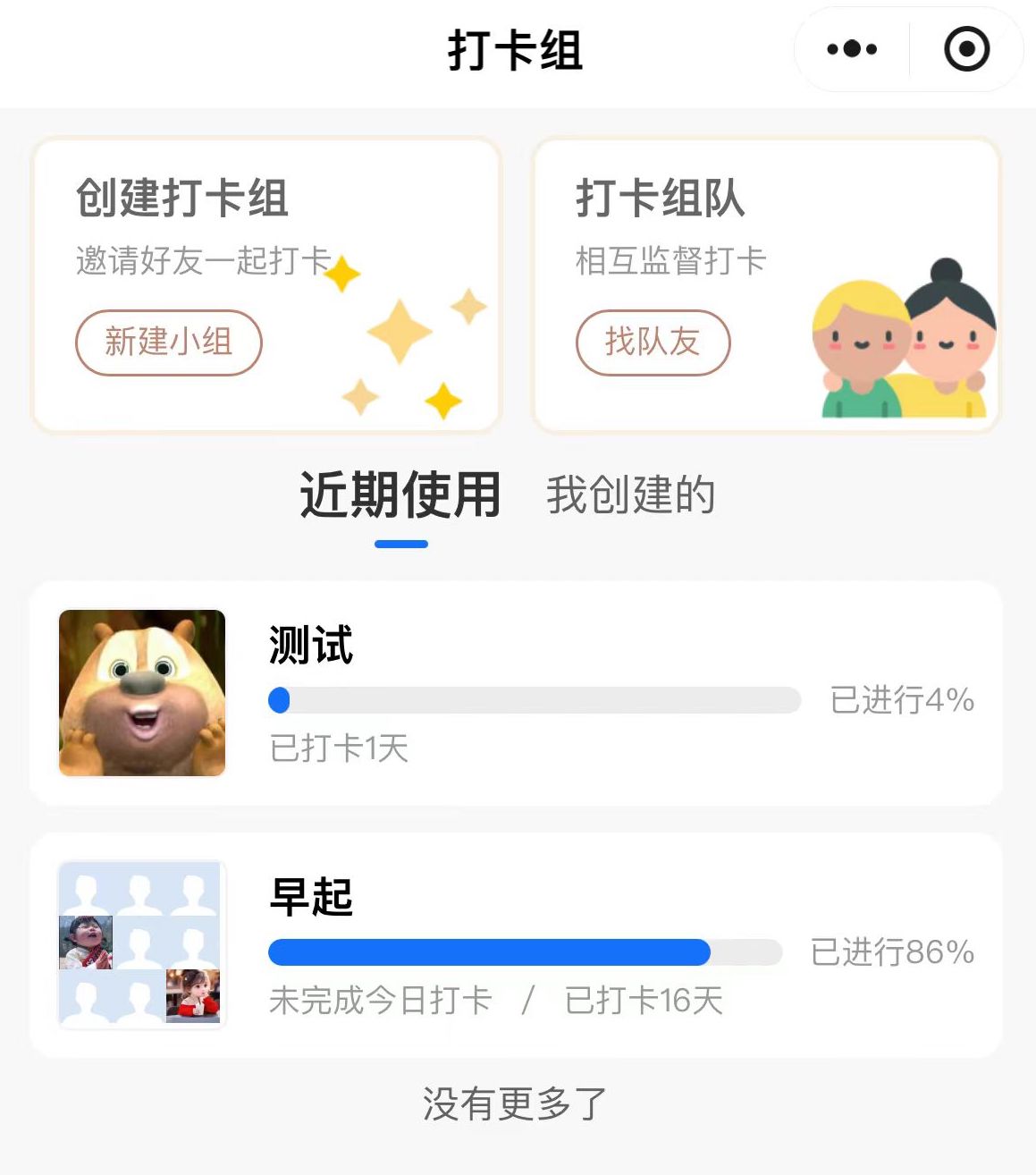 与好友在打卡组中一起打卡,共同成长