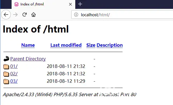 - 在Wamp的www目录下新建目录,通过网址直接访问新建目录下的文件时可以正常访问,但通过选择新建目录下去访问文件,则无法正常访问。
