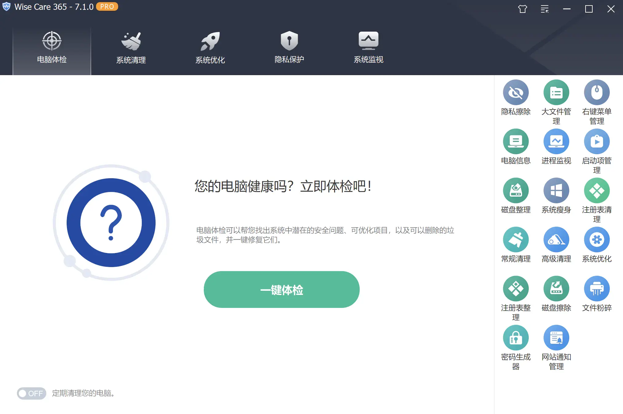 系统体检:该软件可以对电脑系统进行全面检查,发现潜在的问题和风险,并提供解决方案。