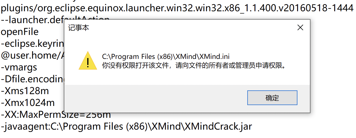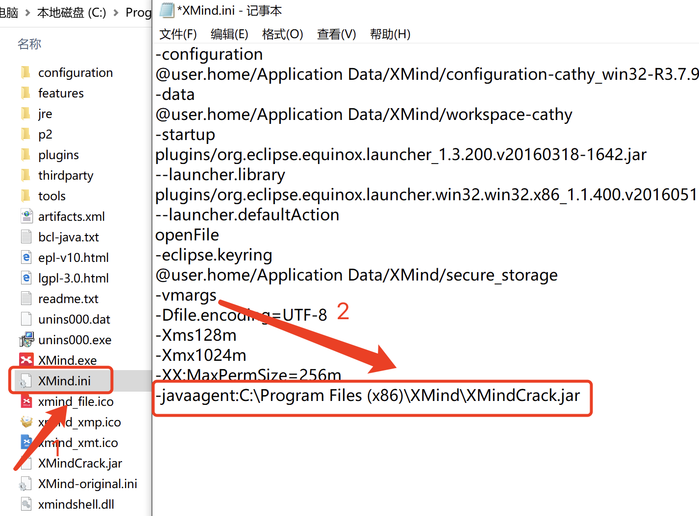 修改XMind.ini文件,在文件末尾处添加-javaagent:C:\Program Files (x86)\XMind\XMindCrack.jar 这里要解决双击文件无法打开程序的问题,必须填入jar包的绝对路径 例如,我的软件安装路径为C:\Program Files (x86)\XMind,这里需要在文件末尾填入-javaagent:C:\Program Files (x86)\XMind\XMindCrack.jar