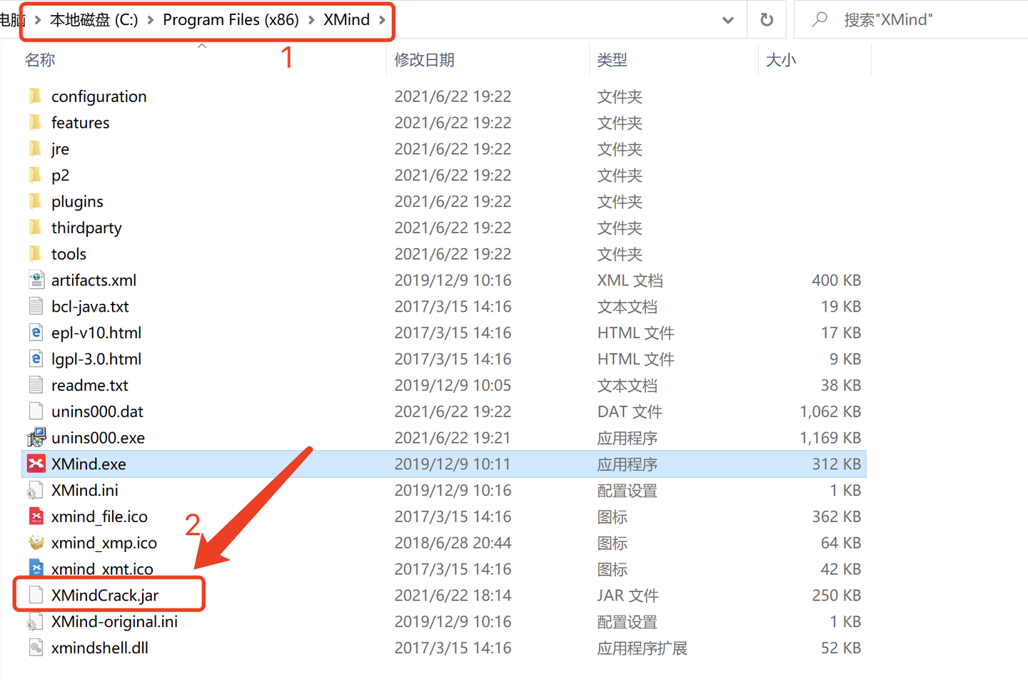 打开文章底部的注册机文件XMindCrack.jar,将文件复制到软件安装目录中